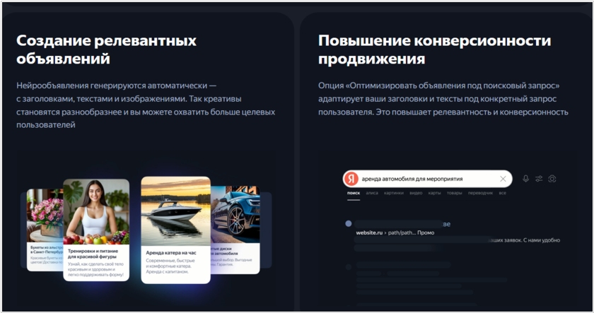 В Яндекс.Директе ИИ теперь умеет в режиме реального времени не только адаптировать заголовки и тексты под запрос пользователя в Поиске, но и блокировать в таких объявлениях определённые слова и словосочетания через функцию «фразы-исключения». Он гарантирует отсутствие неподходящих формулировок, а значит, обеспечивает соответствие коммуникационным стандартам бренда и помогает сохранить фирменный стиль общения рекламодателей с их клиентами. В момент показа объявления ИИ сравнивает прогнозируемую эффективность оригинального и адаптированного текстов. И показывает пользователю наиболее результативный вариант. Согласно данных Яндекса сегодня каждое третье объявление на Поиске адаптируется под запросы пользователей с помощью искусственного интеллекта.