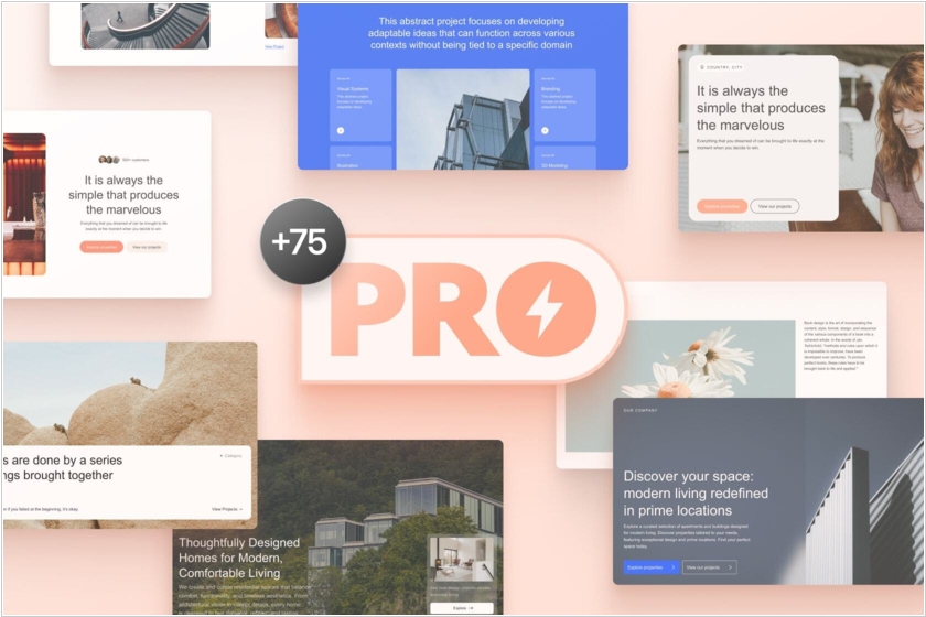 Библиотека блоков Tilda пополнилась новым типом блоков - коллекцией Pro. 75 блоков выполнены в редакторе Zero Block и подойдут под разные задачи: рассказать об услугах, преимуществах, добавить эффектную форму или сделать захватывающую обложку сайта. Они легко адаптируются под контент и разные экраны - вы легко можете поменять в них контент, а дизайн подстроится автоматически под разные разрешения экранов. Блоки можно гибко менять: редактировать дизайн, менять цвет, добавлять свои элементы, комбинировать с базовыми блоками. Новые блоки представлены в следующих категориях: Обложка, О проекте, Заголовок, Текстовый блок, Форма, Преимущества, Колонки, Меню, Плитка и ссылка, Тарифы.