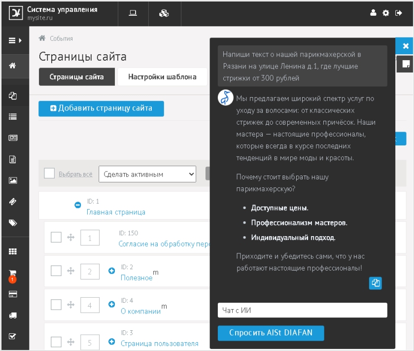 2025. DIAFAN.CMS 7.3: обновлённое управление контентом с ИИ